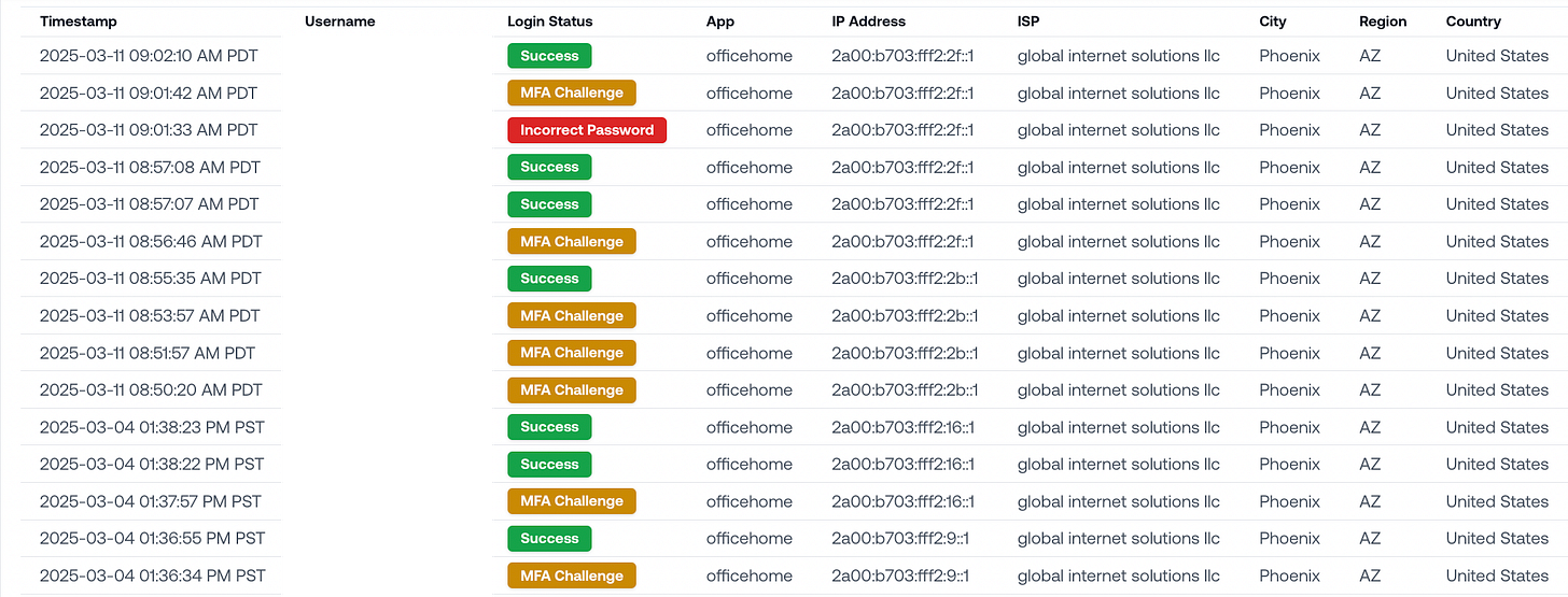 Later, I checked Microsoft’s risk events and realized that Microsoft misclassified the IP’s location as Atlanta instead of Phoenix. If you're blocking Phoenix logins to stop these attackers, note that Microsoft sees them as coming from Atlanta, so these attacks would bypass your conditional access.